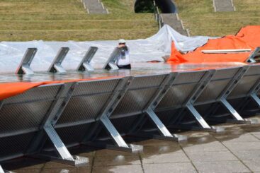 Alu BarrierEl sistema temporal Alu barrier es una medida ligera que ofrece una protección robusta, es de fácil instalación con una larga vida útil que puede llegar hasta los 50 años. Es un sistema apto para todo tipo de superficies: hierba, arena, asfalto… todo ello sin necesidad de utilizar anclajes adicionales.