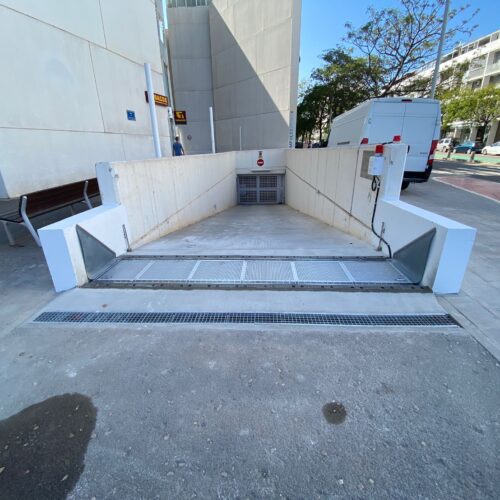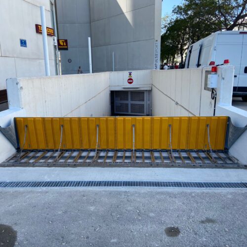 La barrera Hidráulica es un sistema pasivo, siendo uno de los más idóneos por su activación rápida frente a medidas de protección manuales. No requiere instalación eléctrica, se activa y desactiva automáticamente con la fuerza del agua. Funciona sin intervención humana y no requiere conexión eléctrica.